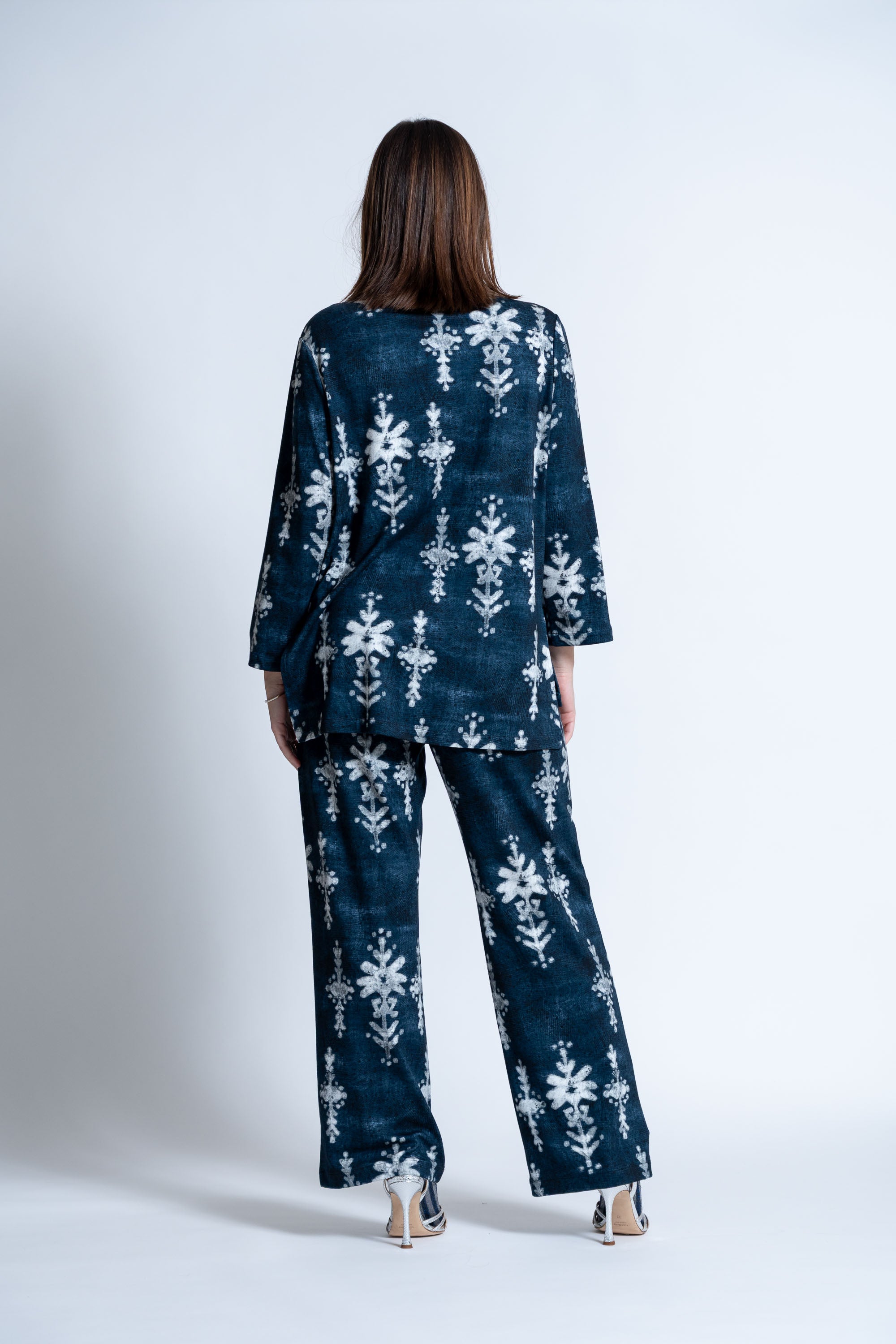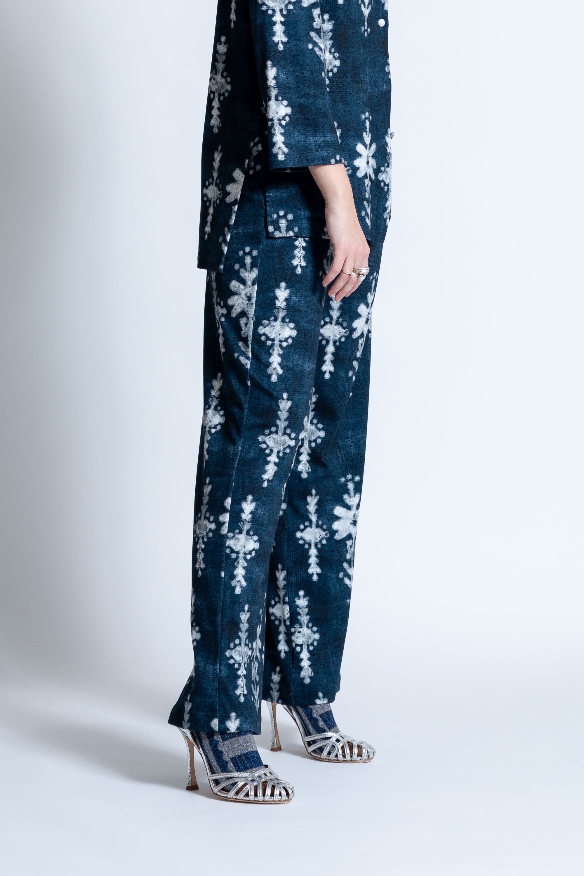 Pantaloni e Camicia: 90% viscosa,7% poliamide, 3% elastan.