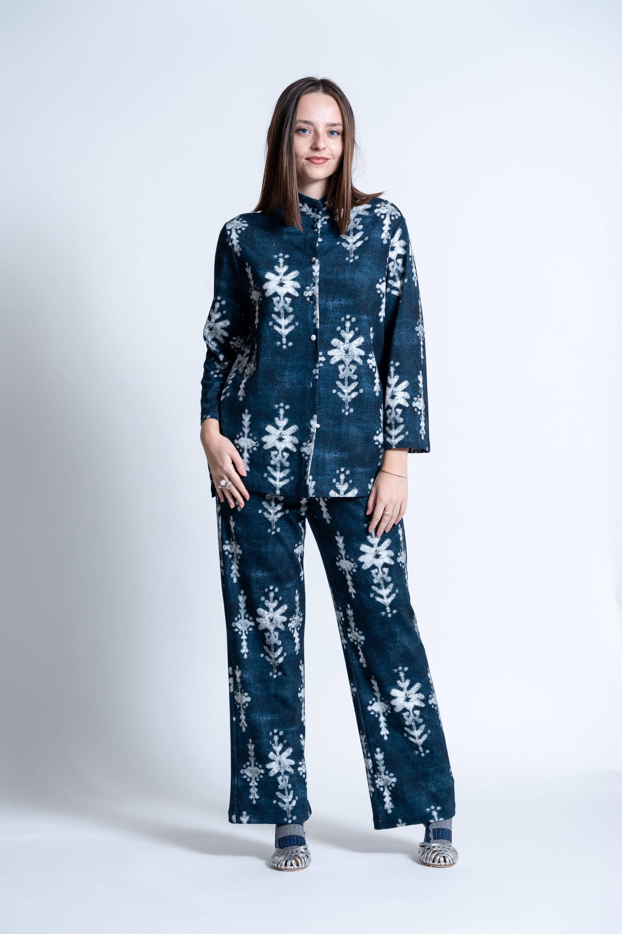 Set composto da giacca reversibile, camicia e pantalone con un tessuto morbido e caldo, ideale per i giorni più freddi.